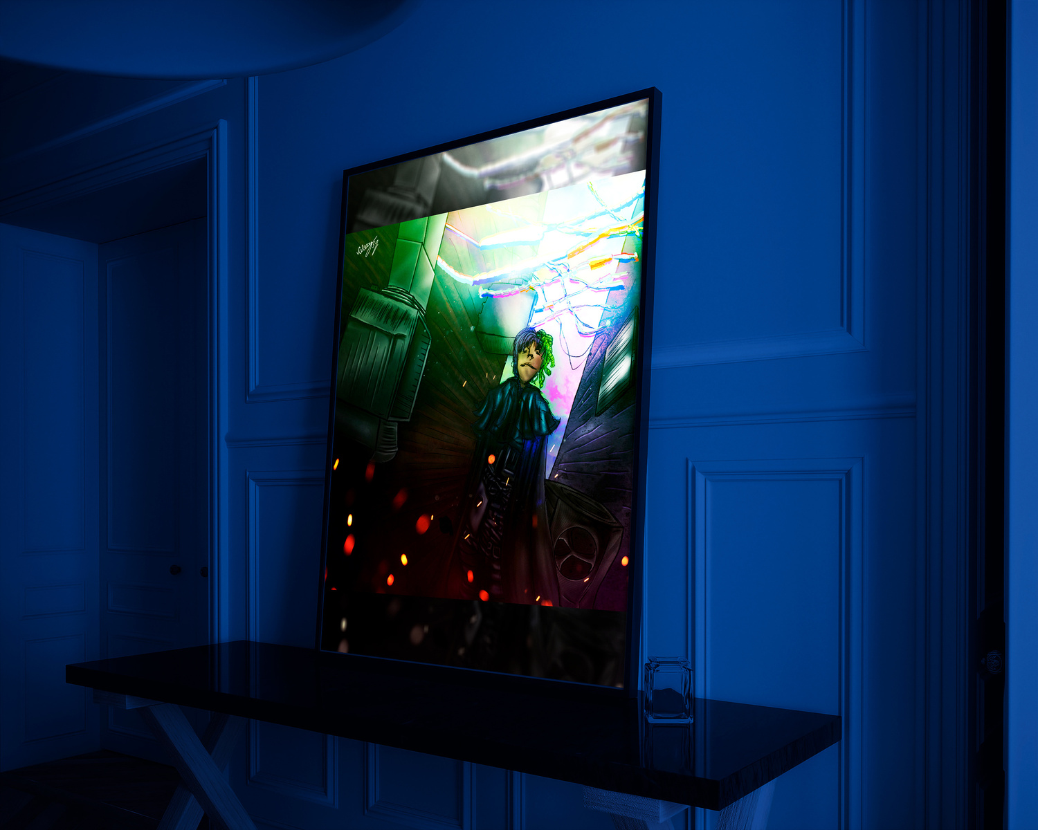 Essa ilustração foi algo especial para mim, um amigo me pediu para eu ilustrar uma ideia de personagem que ele criou do jogo CyberPunk 2077, ele me mostrou como ele era e disse “quero ele com o corpo robótico mas ainda bem humano” então tomei a liberdade e fiz algo chamativo, com luzes LEDs e contemplação a cada detalhe.