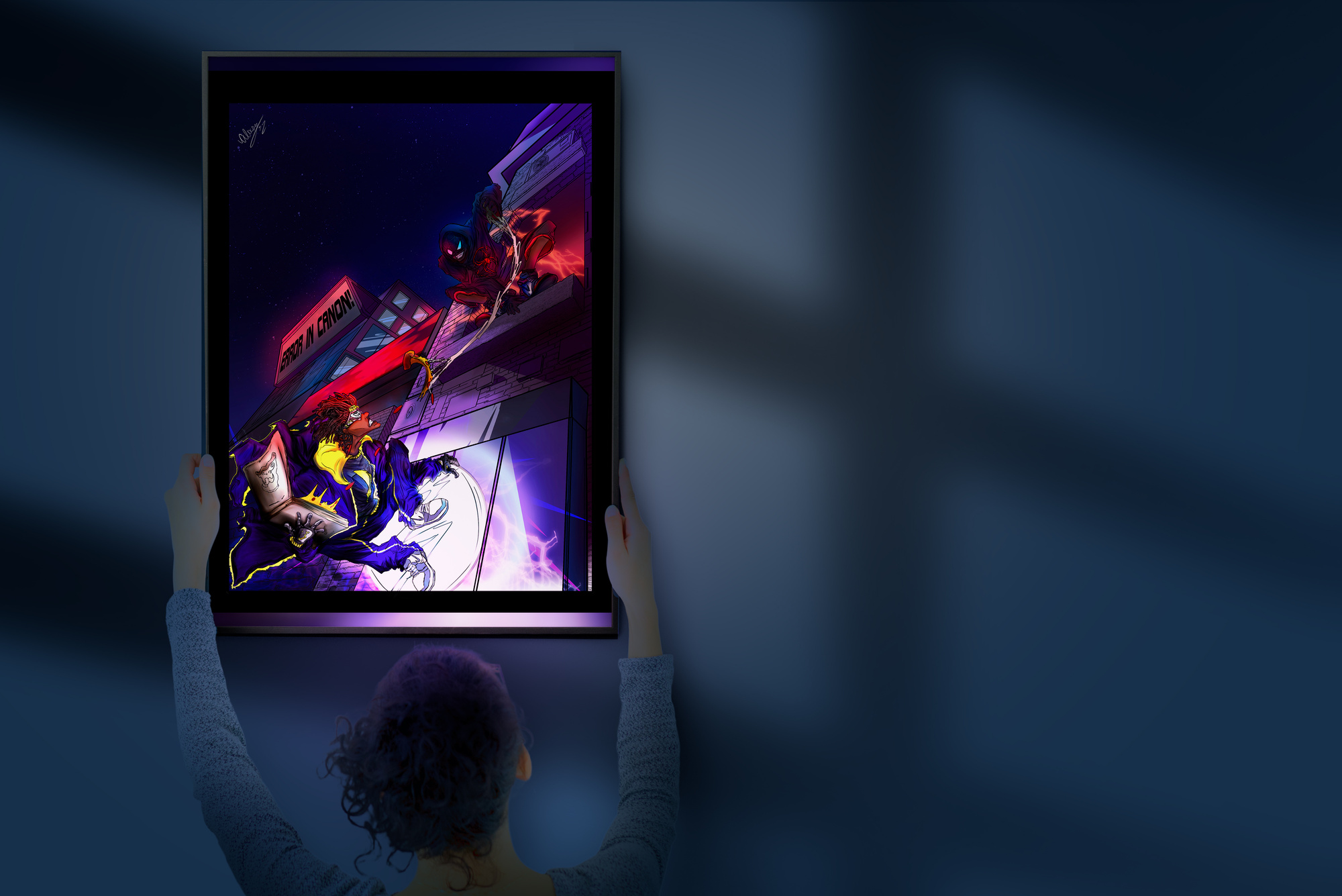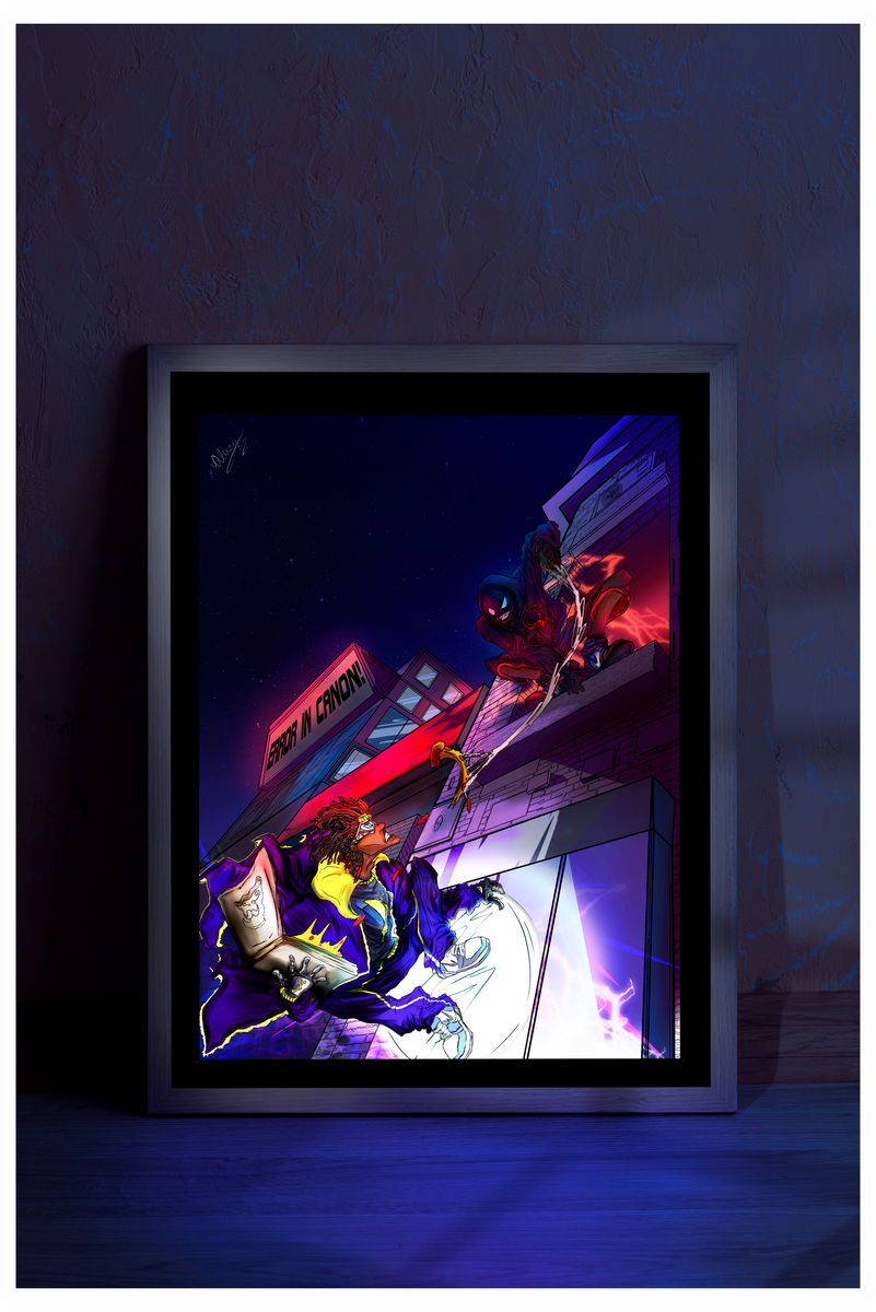 Meu estilo é puxado para algo que se lembre artes de HQs com um pouco de Anime. Pensando nisso tomei liberdade para criaruma capa de HQ inspirado no filme Aranhaverso. Mas eu quis ir além e fiz este Crossover de personagens .