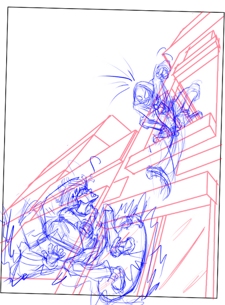 Então comecei a esboçar, quis algo expressivo entre os dois personagens
